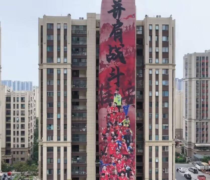 记者驻防到,赛前淮安一高楼外吊挂了巨幅TIFO(海报)为淮安队加油趋奉,海报的高度着实隐蔽一栋楼,绝顶正经。近邻一商户也阐明了这件事。